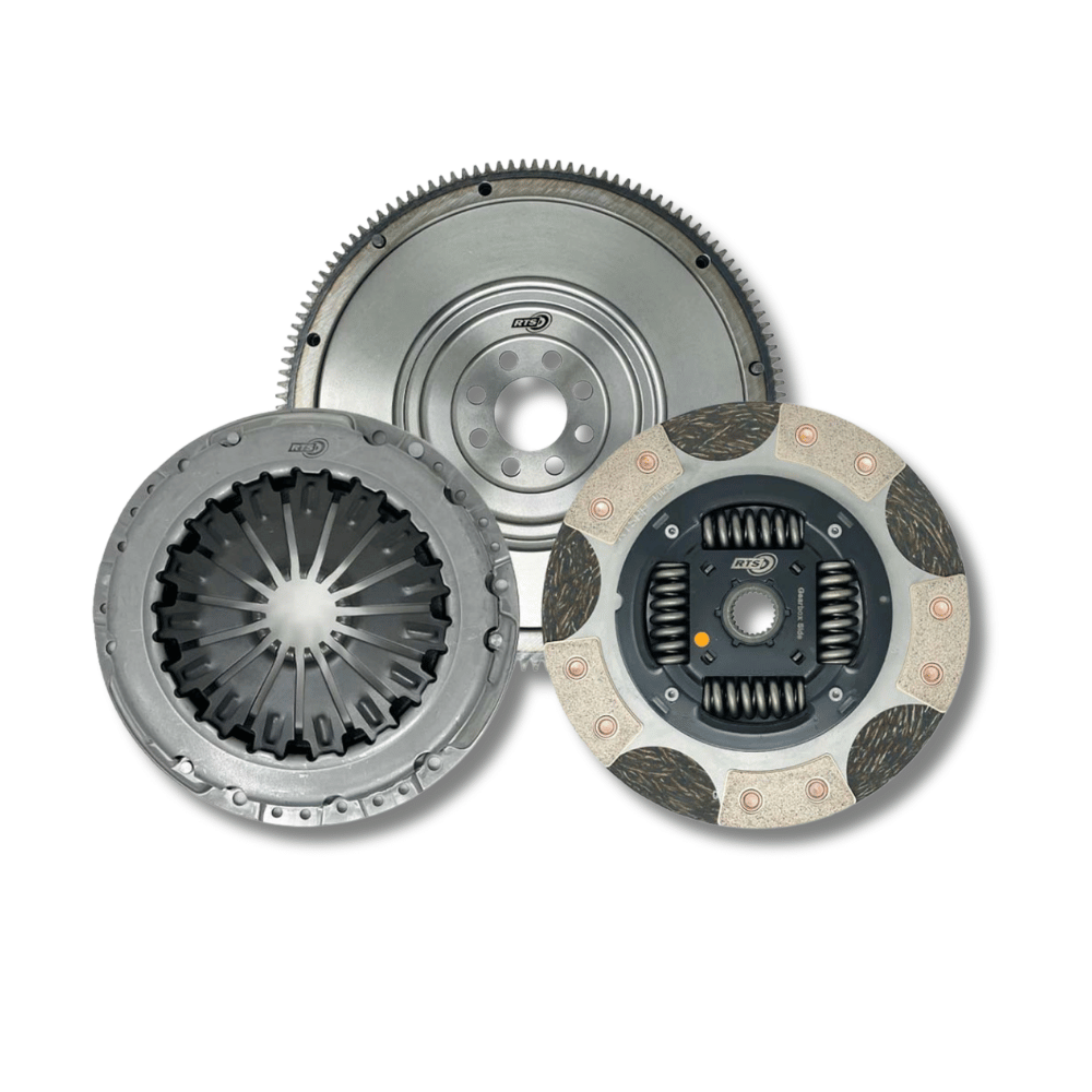 This material also reduces the effects of fade. Fade is the decline in the clutch system’s ability to transmit torque as operating temperatures increases. These features in combination with the previously mentioned micro-structure of spheroidal casting and ER2 technology allows the clutch kit to dissipate heat far more effectively, allowing the clutch to run cooler for longer. RTS kit has been designed with a higher clamp load enabling the clutch system to transmit 60% more torque over the standard clutch kit and is suitable for every day driving, fast road and track/circuit racing whilst maintaining user-friendly driving experience. RTS Twin Friction kit has been designed with a higher clamp load allowing.