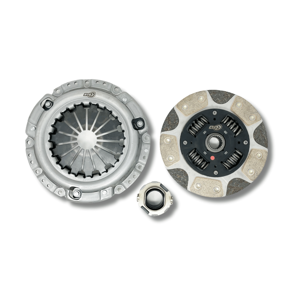This material also reduces the effects of fade. Fade is the decline in the clutch system’s ability to transmit torque as operating temperatures increases. These features in combination with the previously mentioned micro-structure of spheroidal casting and ER2 technology allows the clutch kit to dissipate heat far more effectively, allowing the clutch to run cooler for longer. RTS kit has been designed with a higher clamp load enabling the clutch system to transmit 60% more torque over the standard clutch kit and is suitable for every day driving, fast road and track/circuit racing whilst maintaining user-friendly driving experience. RTS Twin Friction kit has been designed with a higher clamp load allowing.
